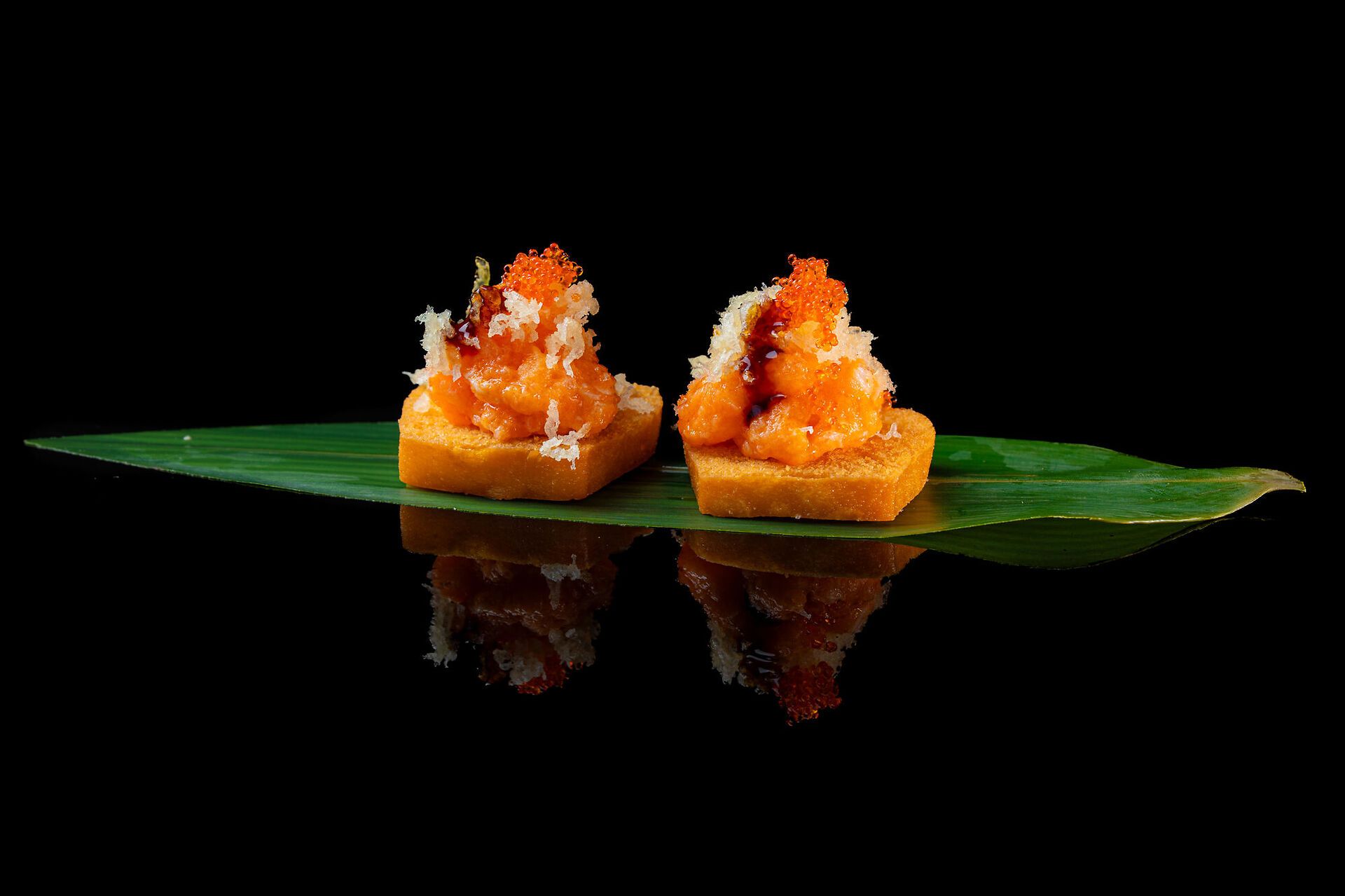 Spicy salmone, philadelphia, tobiko e tempura (2pz)