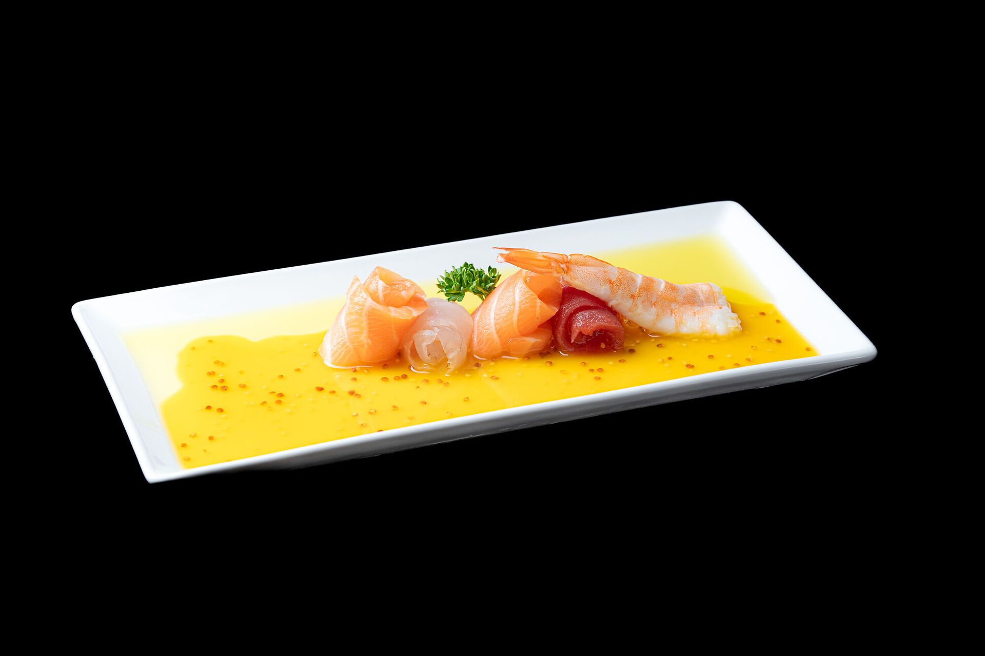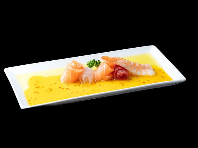 Carpaccio di pesce misto con salsa passione