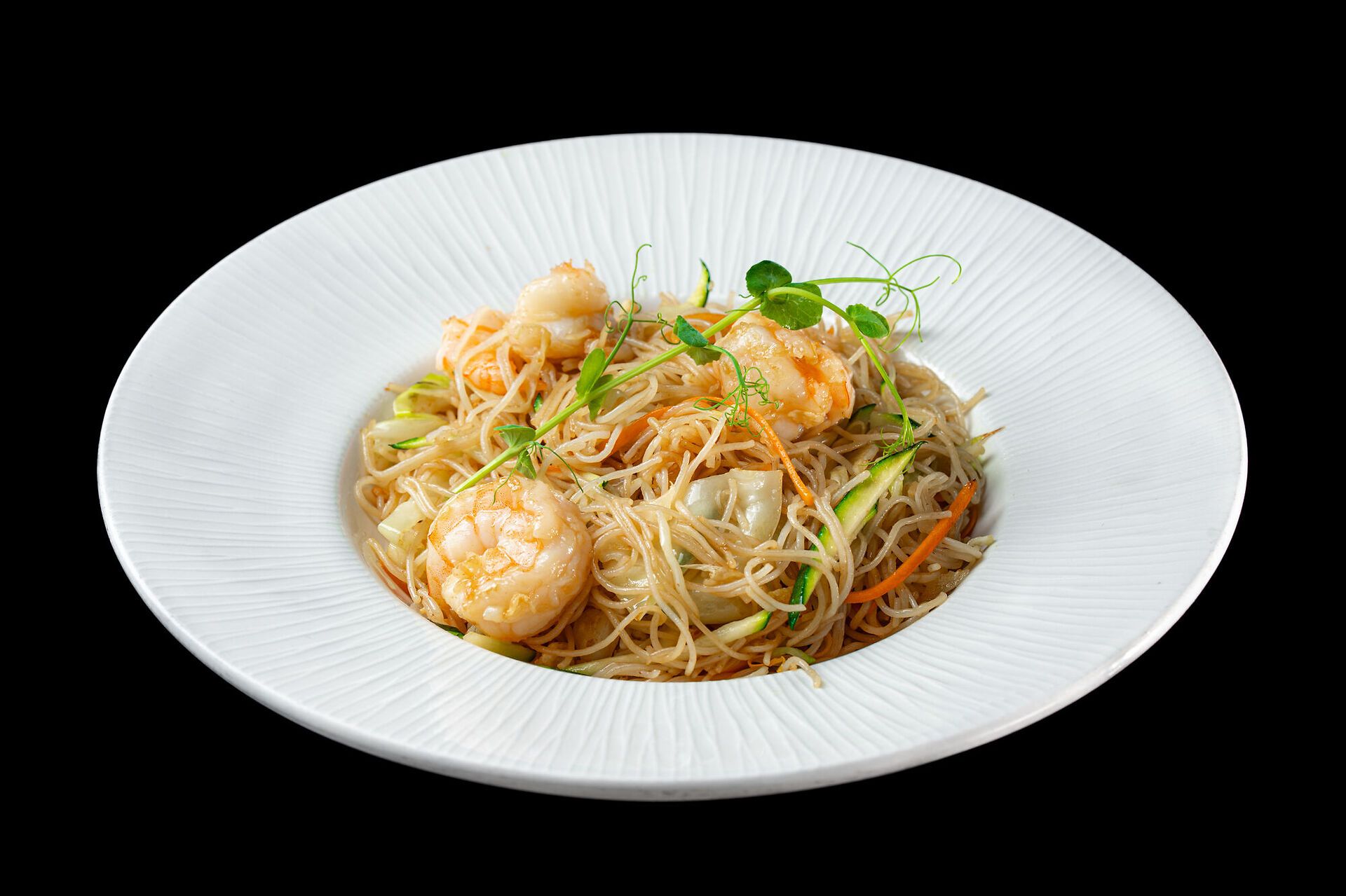 Spaghetti di riso, verdure miste, uovo, gamberi(mazzancolle)