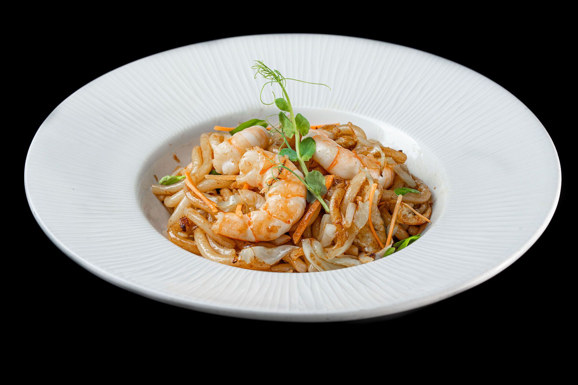 Noodles giapponesi saltati con gamberi (mazzancolle), uovo e verdure miste